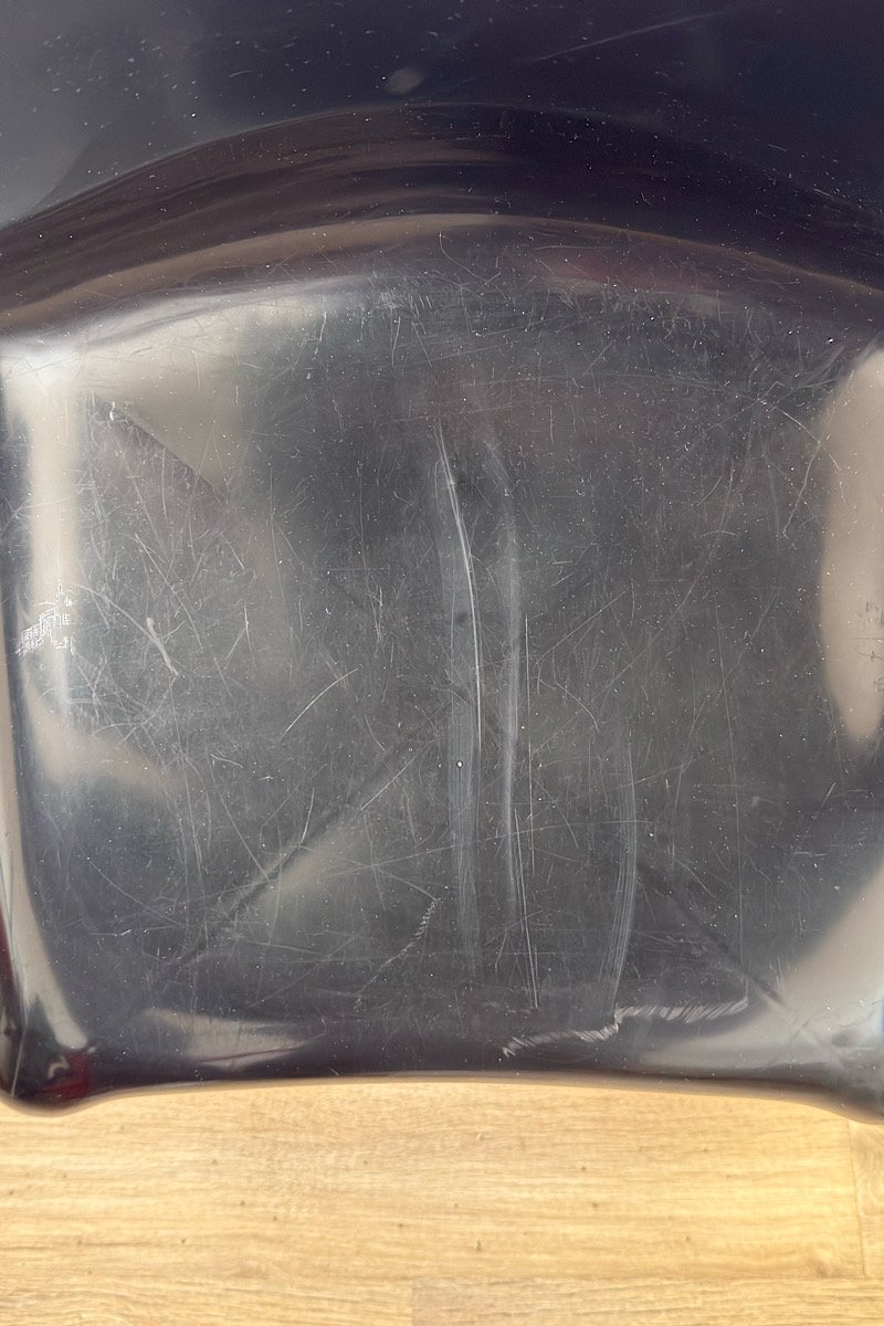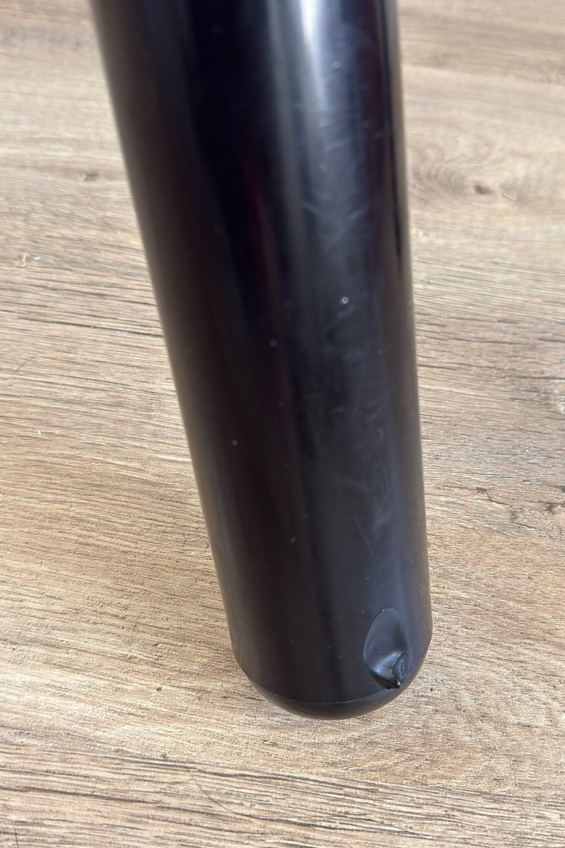 Bon état général, présente des traces de vie (rayures sur l’assise, léger défaut sur le bas d’un pied).