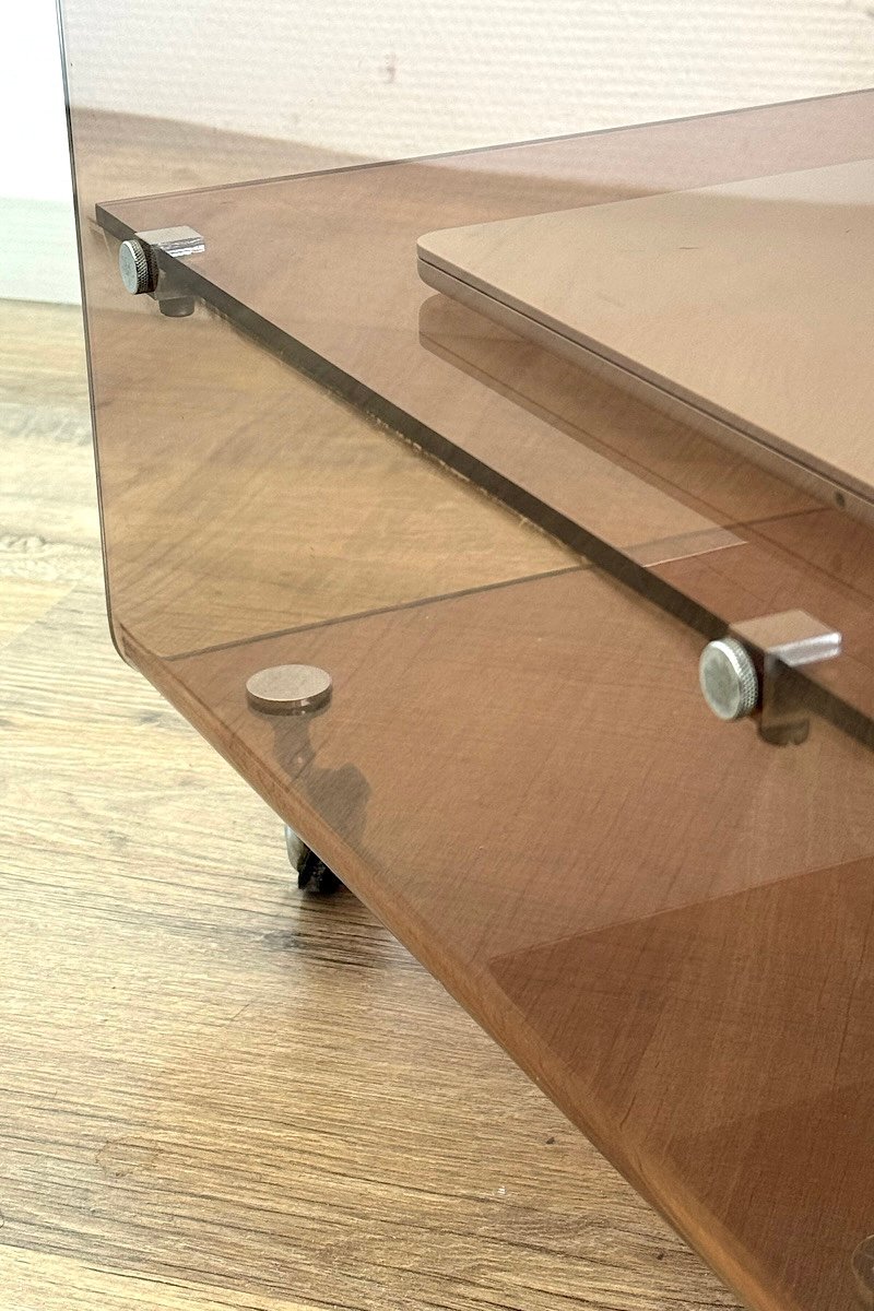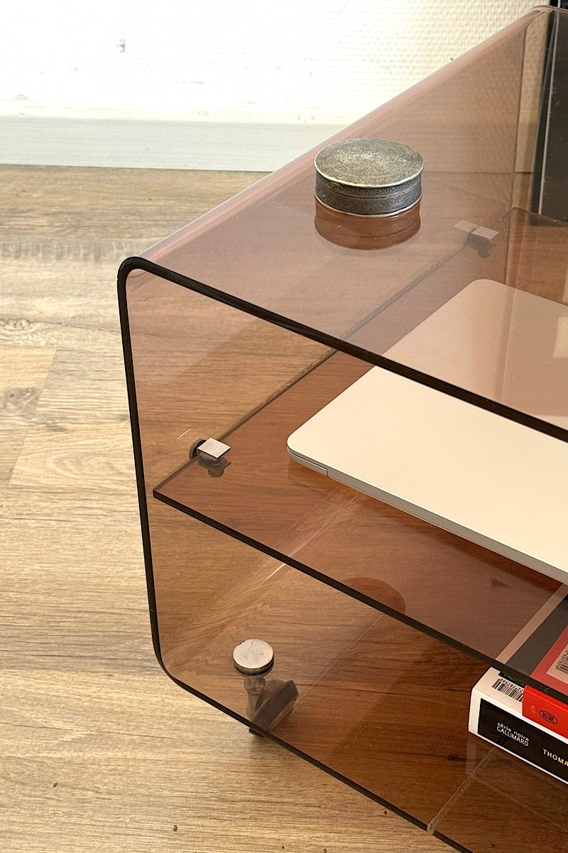Table basse en Plexiglas fumé, Michel Dumas