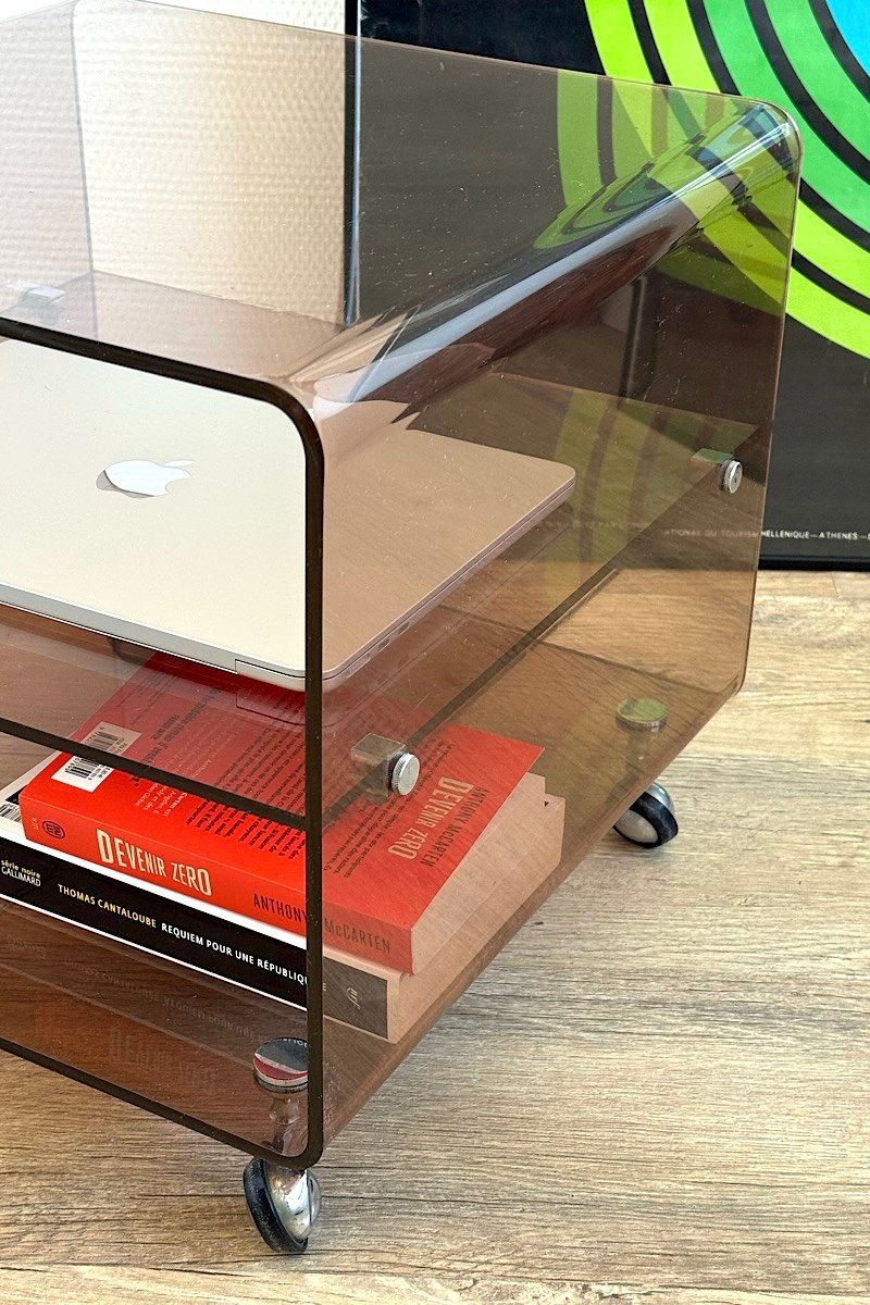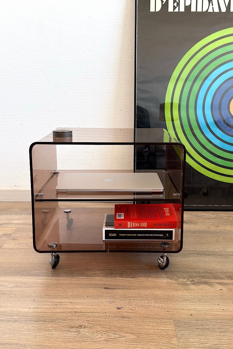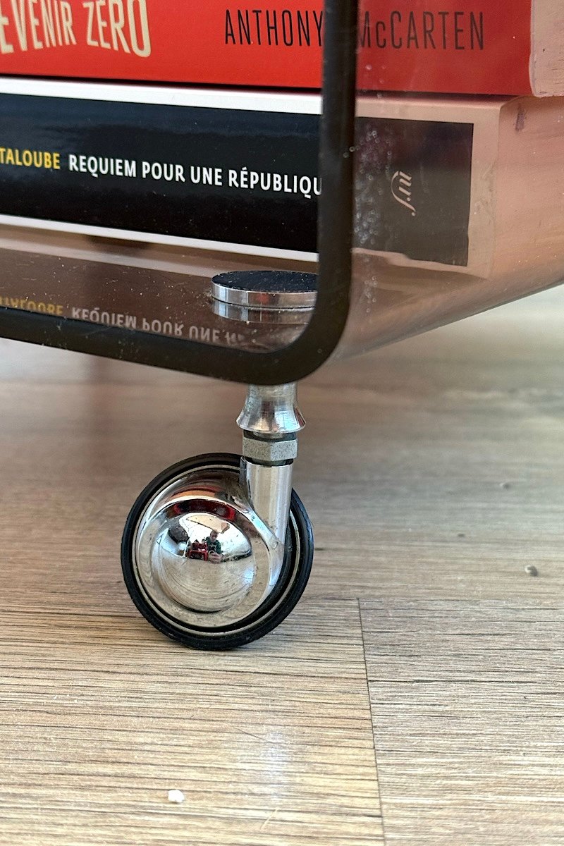 Structure en plexiglas , roulettes chromées .