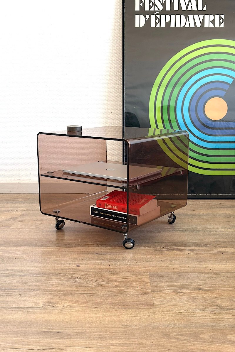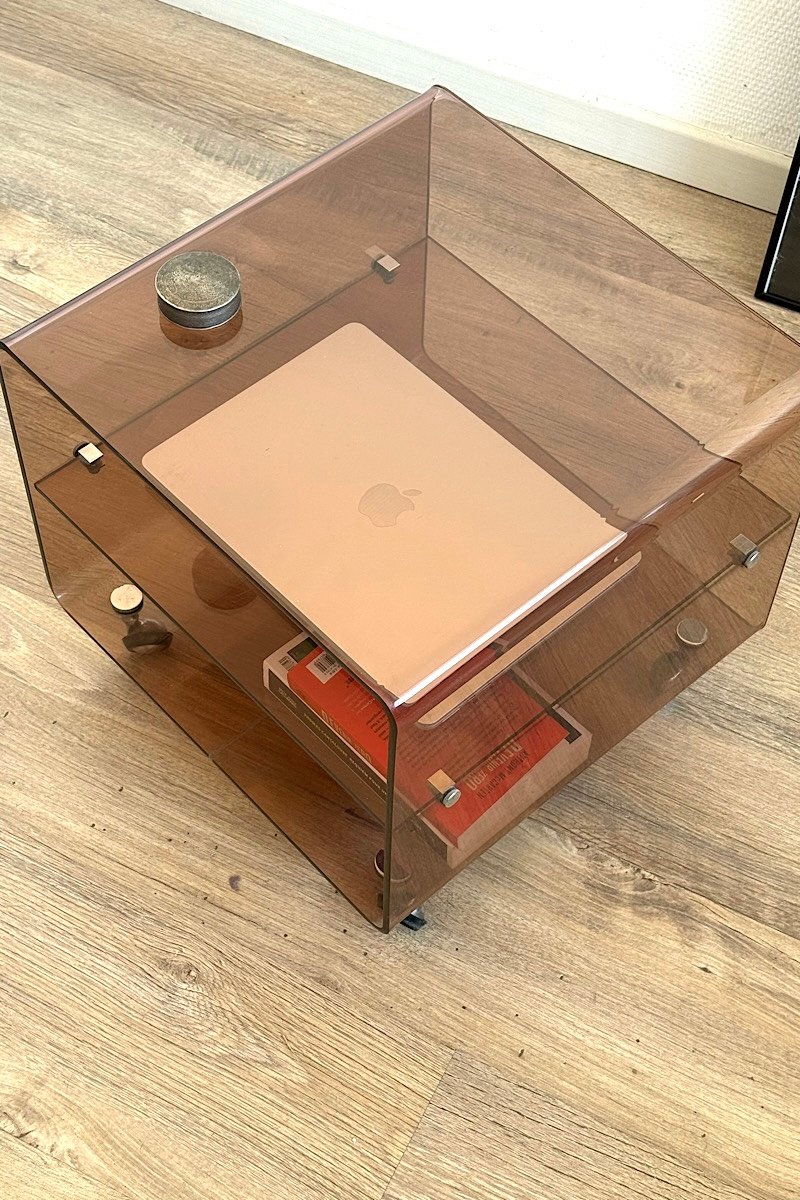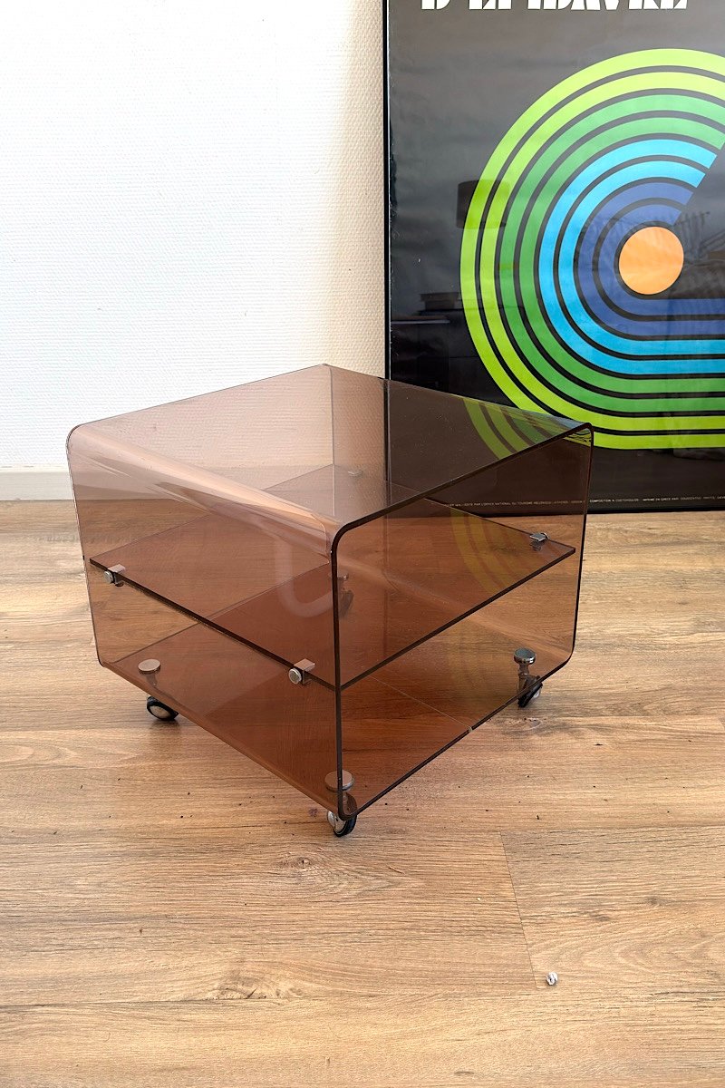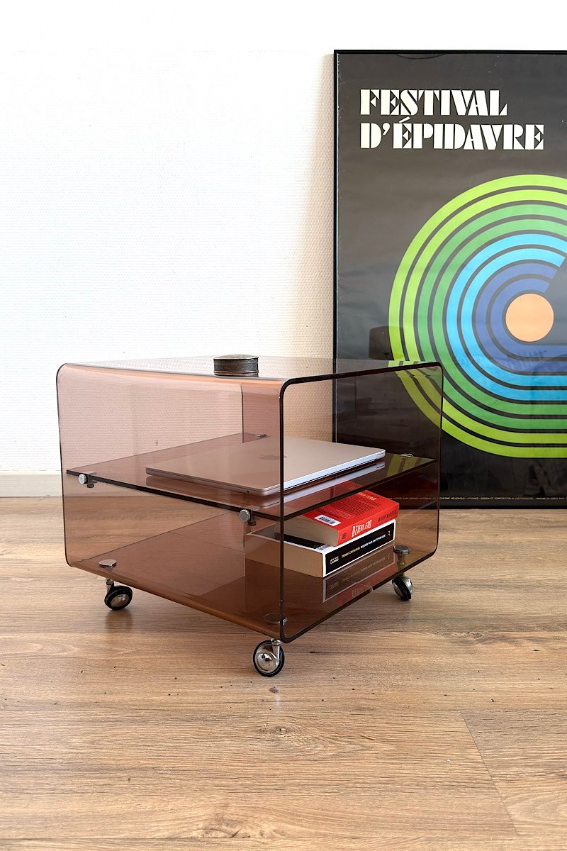 Structure en plexiglas , roulettes chromées .